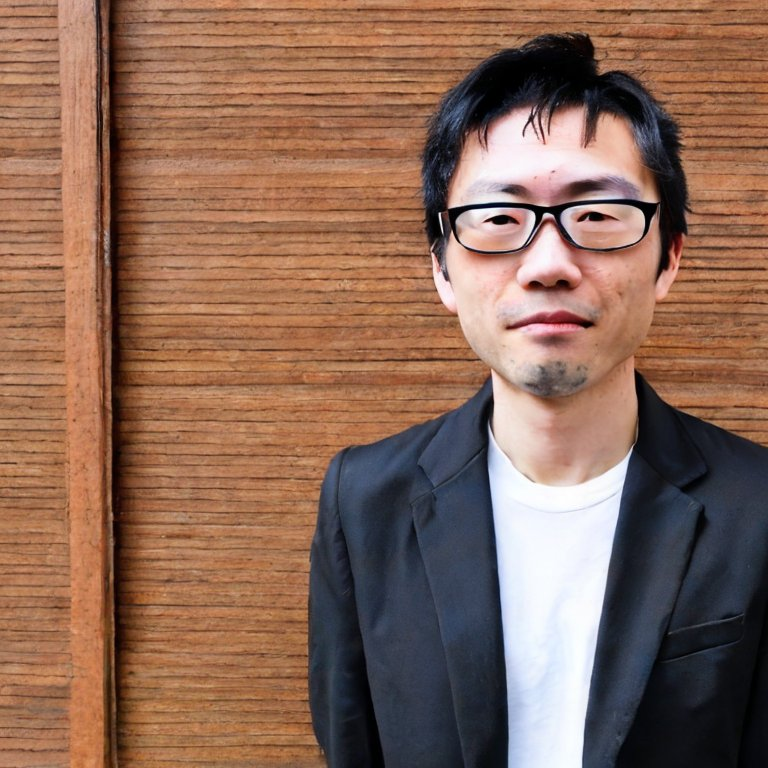 (Stable Diffusion 2.1で「メガネをかけてジャケットと白いTシャツを着た日本人のデータサイエンティスト」というプロンプトを与えて生成した画像)