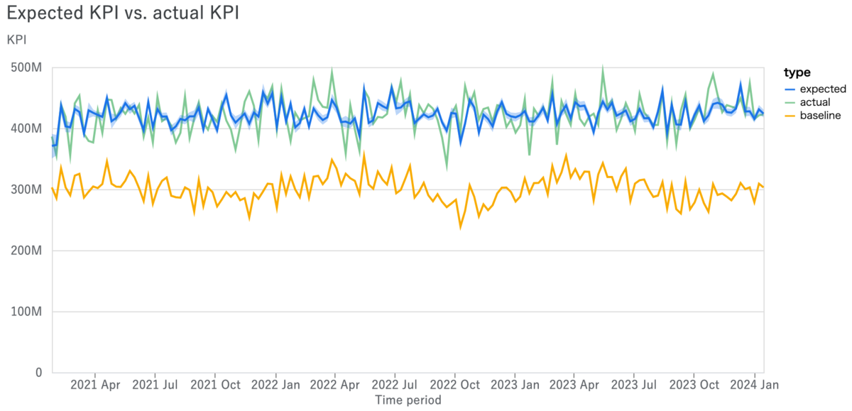 これが前身のLMMMからの最も大きな変更の一つで、トレンド・季節調整はGoogle検索ボリュームなどのコントロール変数と合わせて一括でスプライン回帰で対処しています。理由としては、検索広告におけるGoogle検索ボリュームの「上流」効果をMMMに組み合わせる手法としてスプライン回帰を線形に加えるというものが7年前に提案されており*5、これを採用したためだそうです。