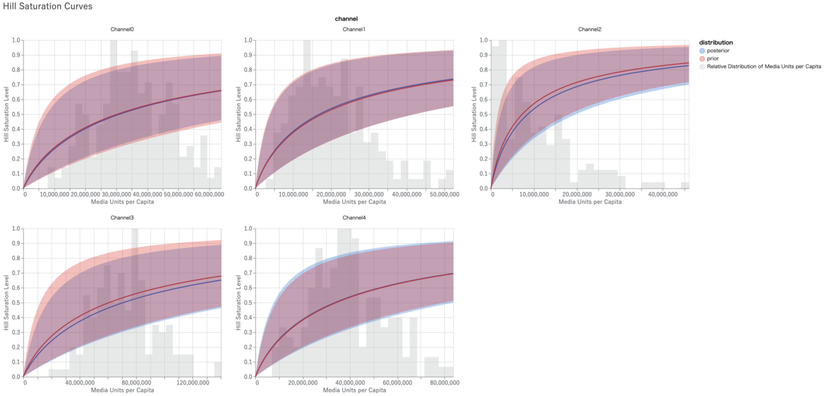 前身のLMMM同様にMeridianもgeo-levelモデリングをサポートしていますが、これは基本的に階層効果モデルにすることでデータセットの時間方向サンプルサイズ(期間)が小さくても複数地域からデータをかき集めてくれば全体のサンプルサイズを確保できるというのが目的であり*7、個々の地域間差異には関心がないんですね。時々「東名阪の各地域の特性の違いを盛り込みたい」みたいな話を聞きますが、それは出来ない相談なのでご注意ください。なおサンプルサイズ確保が目的である以上、いたずらに多数の地域を用意するのも実は本質的ではないです。無理に47都道府県揃える必要はなく、それこそ東名阪3地域でも十分なケースが大半かと思います。